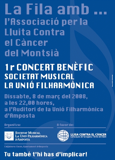 El primer concert d´aquest cicle ha estat dedicat a l´Associació per la Lluita Contra el Càncer del Montsià i ha estat realitzat el dia 8 de març de 2008.