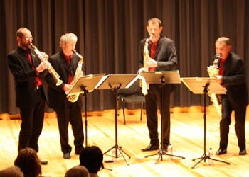 El Diastema Saxophon Quartet, està considerat un dels millors quartets de saxofons de l´escena internacional. Fundat l´any 1986 agrupa quatre músics, Philippe Lecocq (soprano), Christophe Bois (alt), Philippe Braquart (tenor) i Eric Devallon (baríton), tots ells guardonats amb el Primer Premi del Conservatori Nacional Superior de Música de París. I la seva actuació no podia ser menys, fent gaudir al públic assistent amb un concert de dues parts. A la primera van actuar els quatre components amb peces del seu últim enregistrament i la segona amb la col·laboració de la Banda de Música de La Unió Filharmònica, amb l´obra Saxtory, escrita per a quartet de saxofons i banda per J.Naulais i Maria de Buenos Aires d´Astor Piazzola, arranjada per alguns dels components de Diastema per poder ser interpretada amb quartet de saxofons i banda de música.