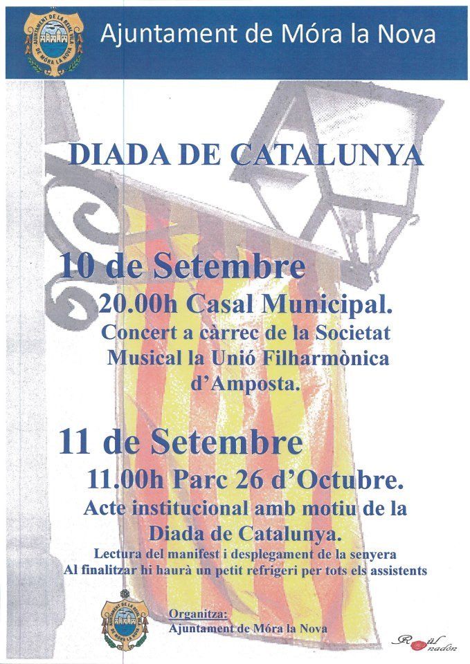 Aquest vespre a les 20 h. al Casal Municipal de Móra la Nova, concert a càrrec de la Banda de Música La Unió Filharmònica d´Amposta, un els actes de celebració de la Diada Nacional de Catalunya organitzats per l´Ajuntament de Móra la Nova.