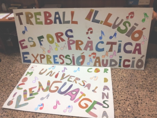 La setmana passada, l’Escola de Música, a l´igual que la resta de la Societat, va celebrar Santa Cecília, patrona dels músics. En concret, l’aula de cant coral, sensibilització i iniciació i, amb l´ajuda dels professors Núria Ferré i Jordi Mompel, va preparar un mural per mostrar la importància que la música suposa per a les persones i que van exposar a l’entrada de l’escola.