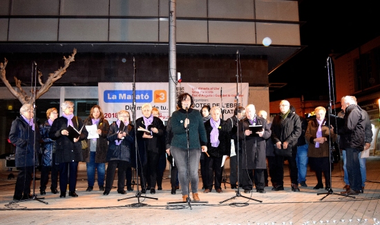 Després de les intervencions dels representants de les entitats organitzadores, la Coral va cantar un repertori de nadales, finalitzant l´acte cantant, juntament amb el públic assistent, la nadala “Fum, fum, fum dels presos i exiliats polítics“.
