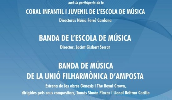 La segona part del concert estarà protagonitzada per l’estrena de dos composicions. La Banda de Música de la Unió Filharmònica interpretarà les obres Gènesis i The Royal Crown, que a més, estaran dirigides pels mateixos compositors, Tomàs Simón Plazas i Lionel Beltrán Cecília, respectivament.