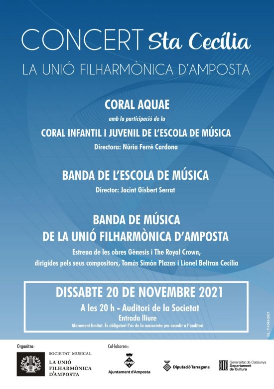 Aquest any sí. Després de l’aturada obligada a causa de la pandèmia de la Covid, la Societat Musical de la Unió Filharmònica celebrarà enguany la diada de la patrona de la música, amb el tradicional Concert de Santa Cecília.