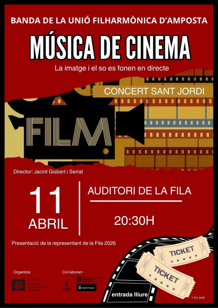 El Dissabte dia 11 d’Abril la Banda de la Unió Filharmònica d’Amposta, ens oferirà el Concert de Sant Jordi a l’Auditori de la Fila, a les 20:30h. L’entrada és lliure, fins completar aforament.