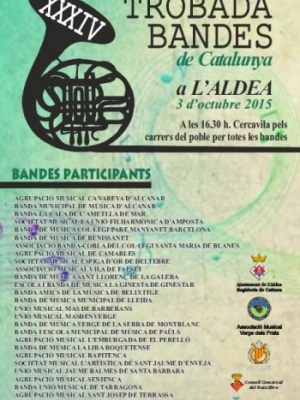 Més 1.200 músics d’una trentena de bandes es reuniran demà dissabte 3 d’octubre al municipi de l’Aldea amb motiu de la 34a edició de la Trobada de Bandes de Música de Catalunya.