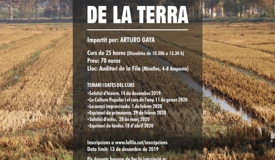 L’objectiu del curs és aprofundir en la cultura i les tradicions de la regió cultural de l’Ebre a a través del cançoner popular i el curs de l’any i el cicle de la terra, així com recuperar el sentit de la festa popular. L´impartirà el músic Arturo Gaya, i consta de 25 hores repartides en 6 sessions, cadascuna amb entitat pròpia pel que fa als continguts i amb pràctica de cant seqüenciada.