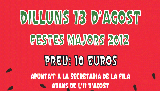 Apunta´t al sopar a la fresca que hem organitzat per al dilluns 13 d´agost a la Fila. El preu és de 10 euros.
